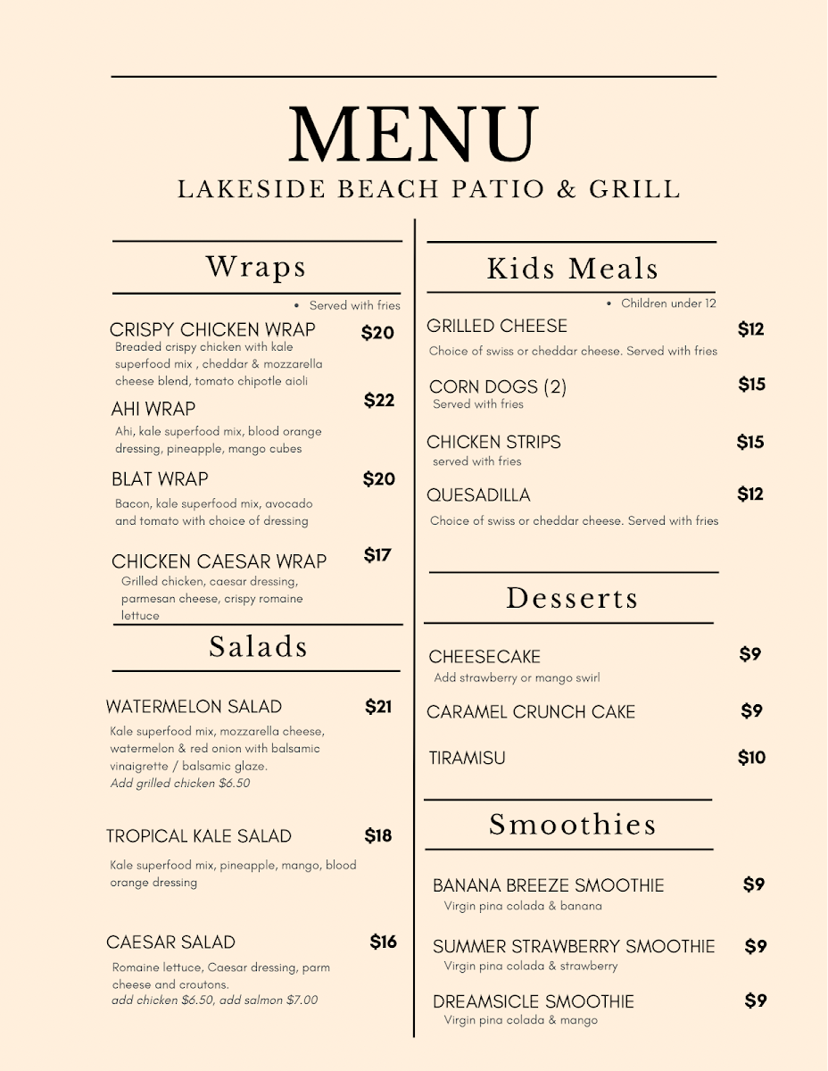 If you're craving delicious comfort food with a stunning lakeside view, look no further than Lakeside Beach Patio & Grill Menu. Located in the heart of South Lake Tahoe, this cozy spot brings together fresh, flavorful dishes and a relaxing atmosphere by the water. Whether you're in the mood for a hearty burger, a fresh salad, or something to share with friends, there's something here to satisfy every palate.